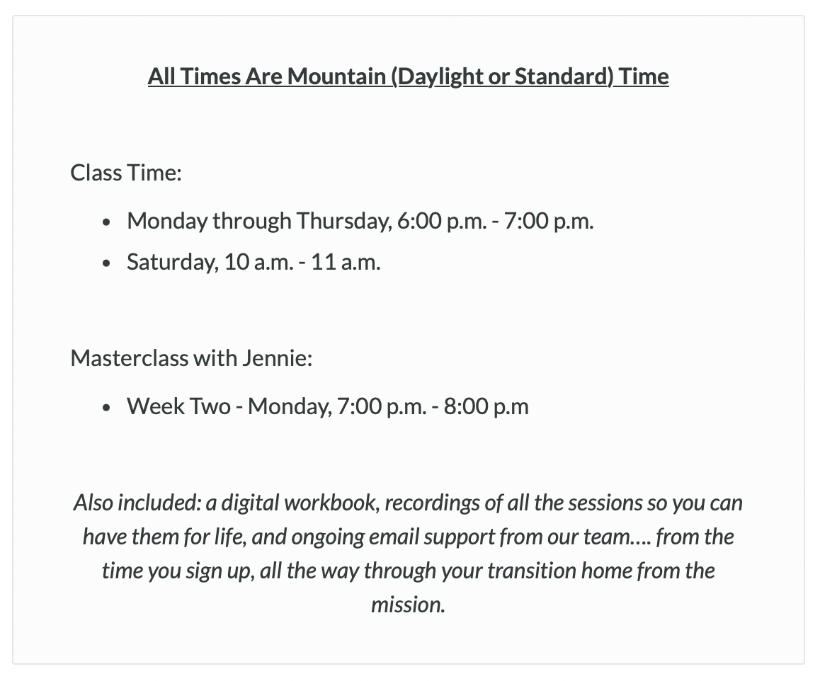 With specific mental and emotional tools, you arm yourself to become fail-proof on the mission and actually increase your capacity to serve those around you and feel the spirit.